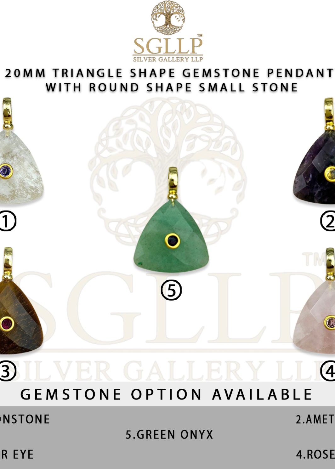 CS061 20MM TRIANGLE GEMSTONE PENDANT WITH ROUND SHAPE SMALL STONE