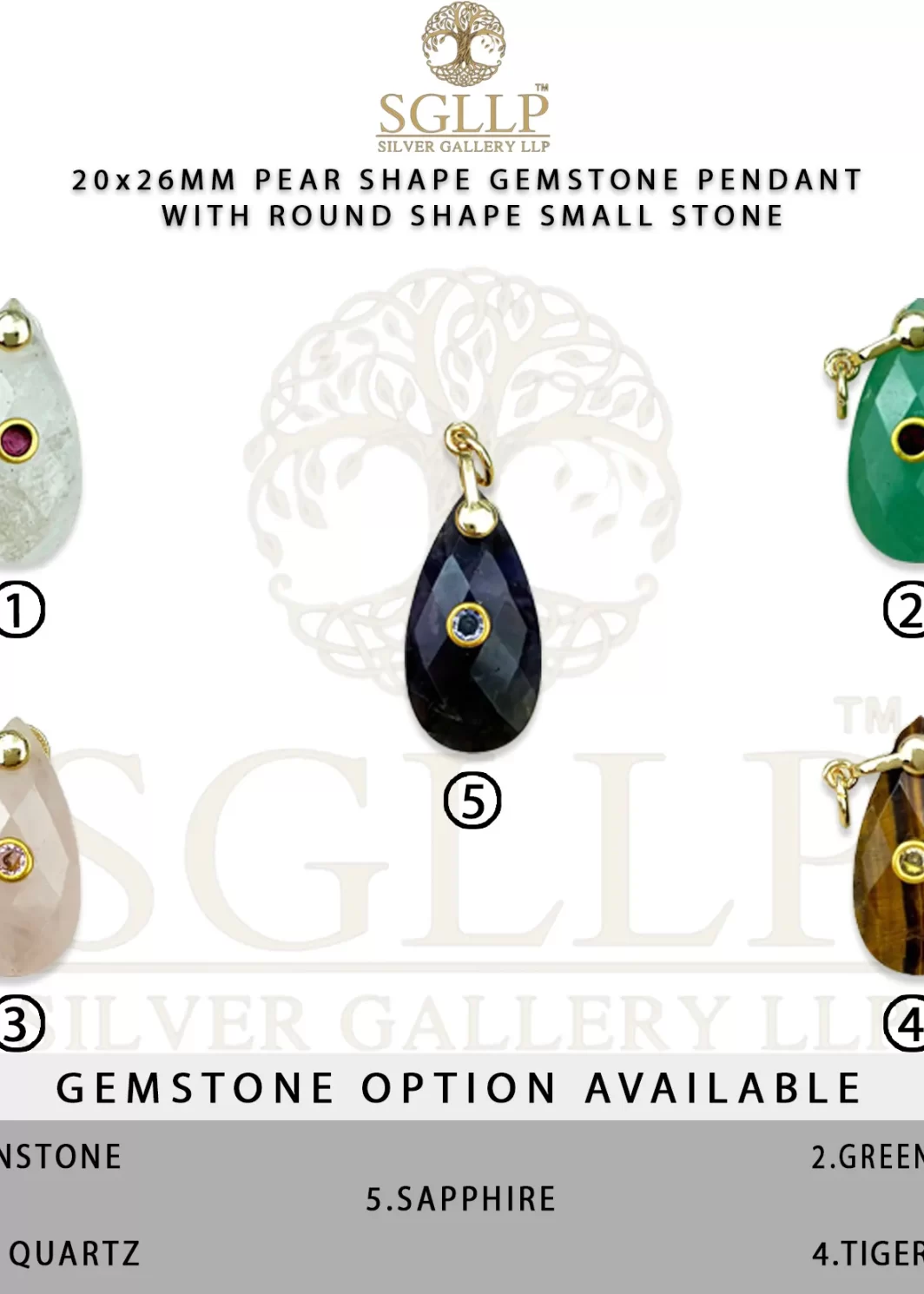 CS058 20X26MM PEAR SHAPE GEMSTONE PENDANT WITH ROUND SHAPE SMALL STONE