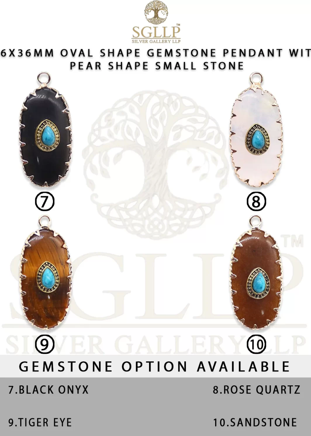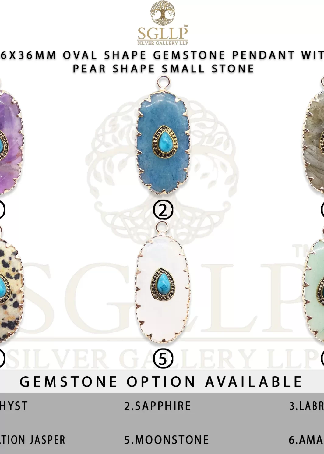 CS055 16X36MM OVAL SHAPE GEMSTONE PENDANT WITH PEAR SHAPE SMALL STONE