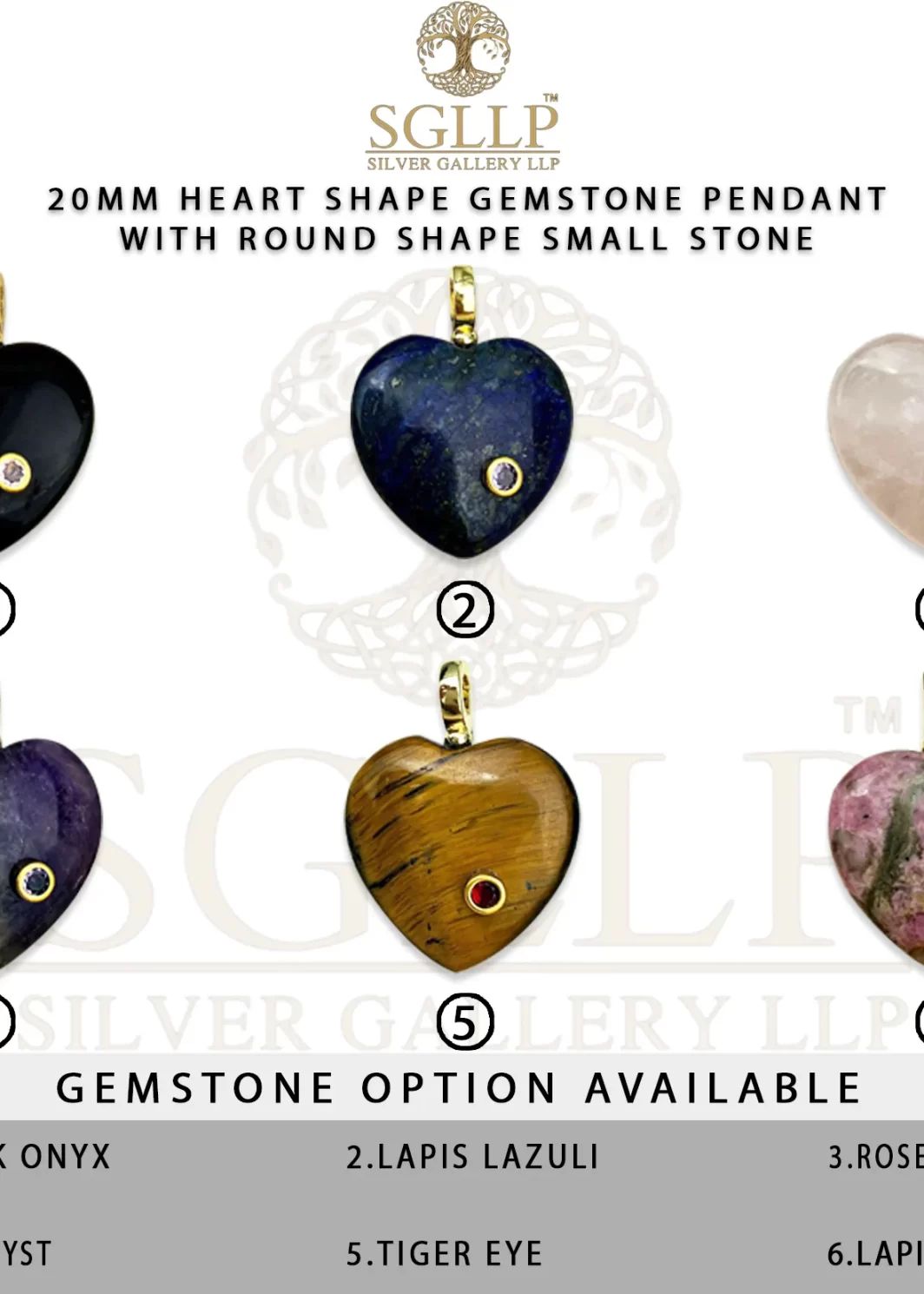 CS060 20MM HEART SHAPE GEMSTONE PENDANT WITH ROUND SHAPE SMALL STONE