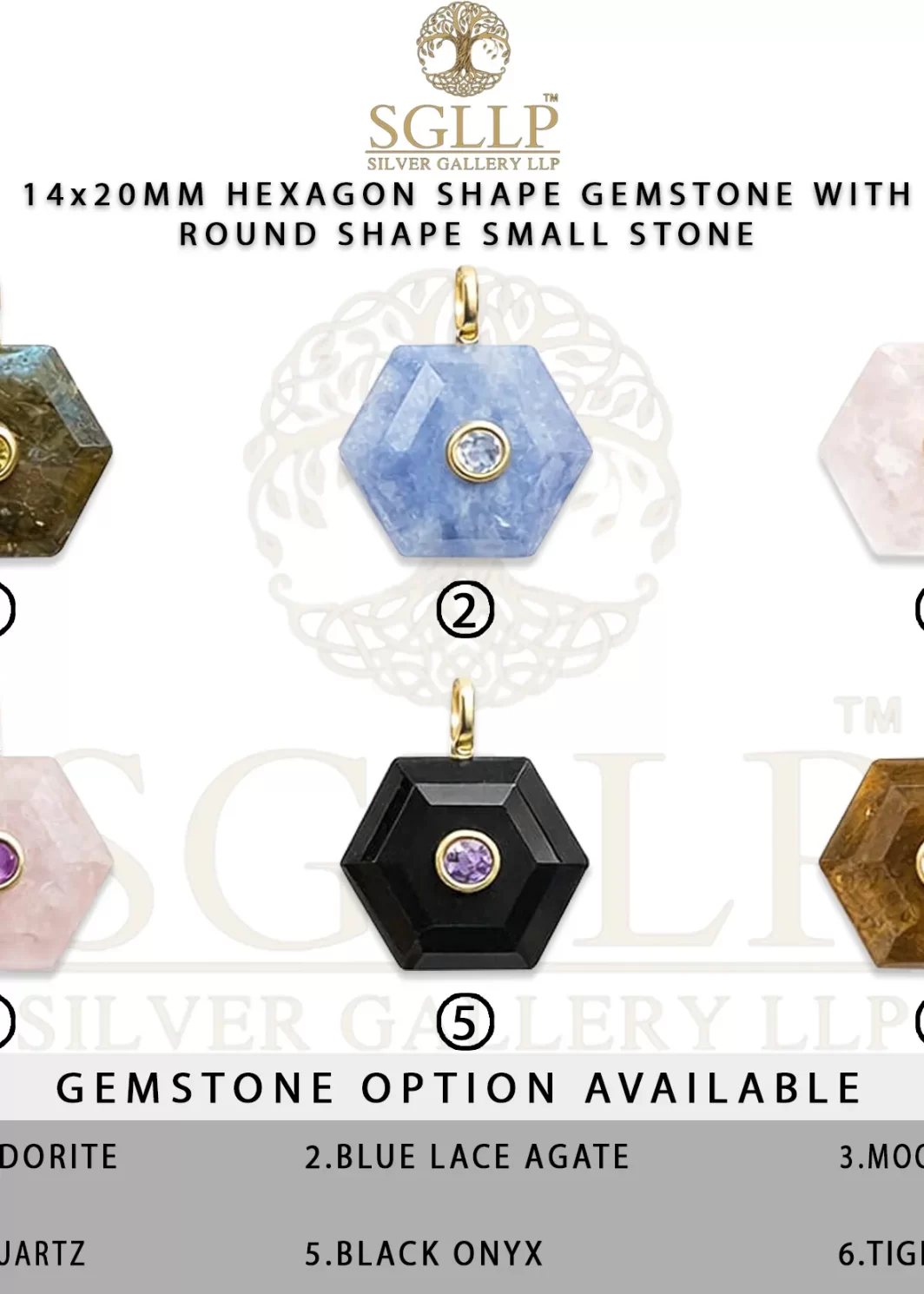 CS053 14X20MM HEXAGON SHAPE GEMSTONE WITH ROUND SHAPE SMALL STONE