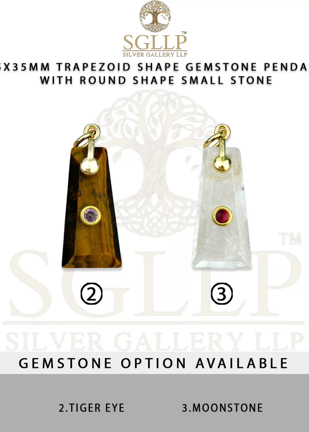 CS056 15X35MM TRAPEZOID SHAPE GEMSTONE PENDANT WITH ROUND SHAPE SMALL STONE