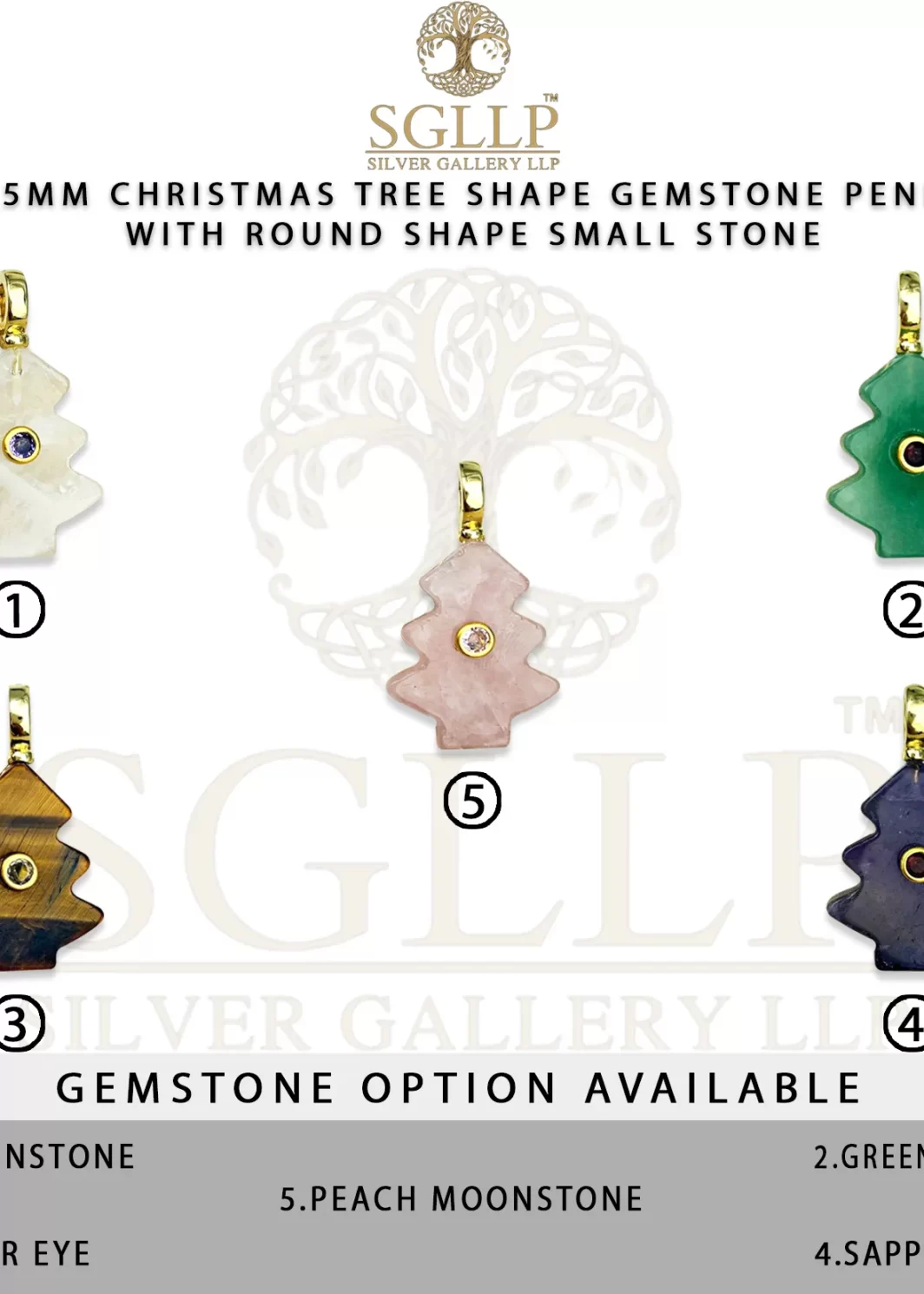 CS059 20X25MM CHRISTMAS TREE SHAPE GEMSTONE PENDANT WITH ROUND SHAPE SMALL STONE