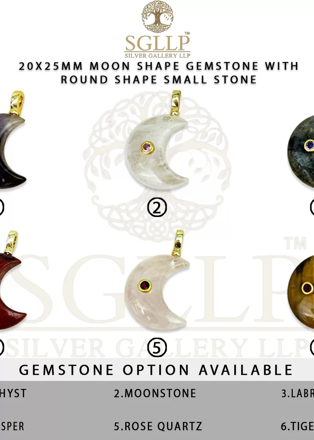 CS057 20X25MM MOON SHAPE GEMSTONE PENDANT WITH ROUND SHAPE SMALL STONE