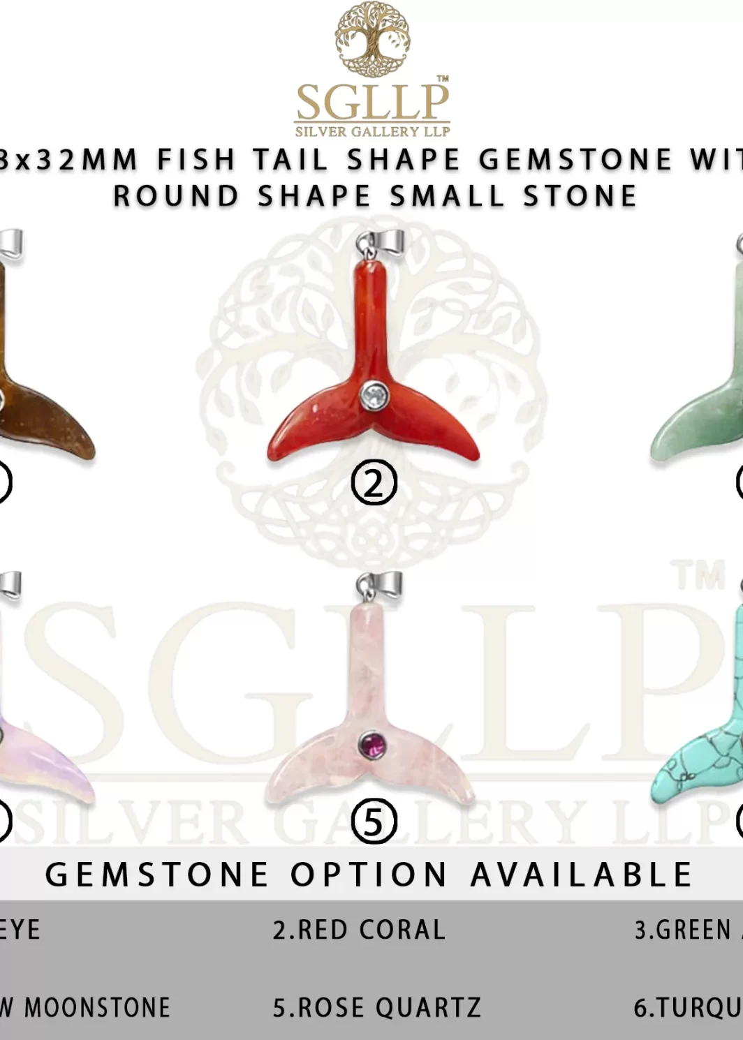 CS052 38X32MM FISH TAIL SHAPE GEMSTONE WITH ROUND SHAPE SMALL STONE