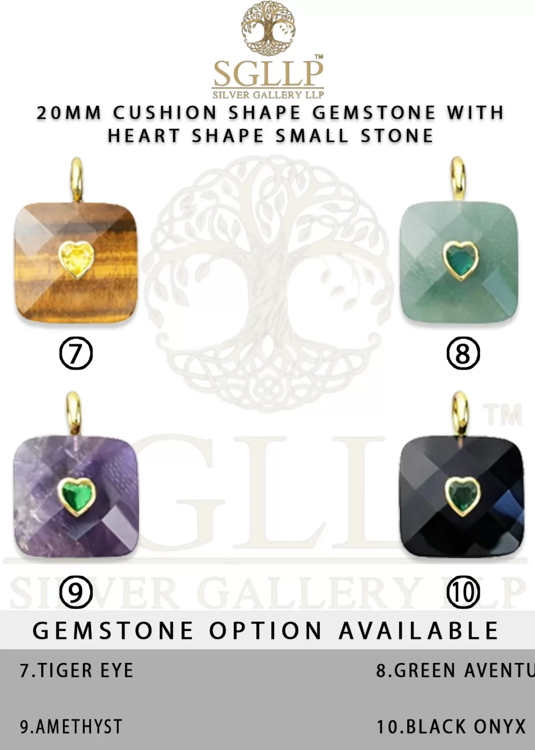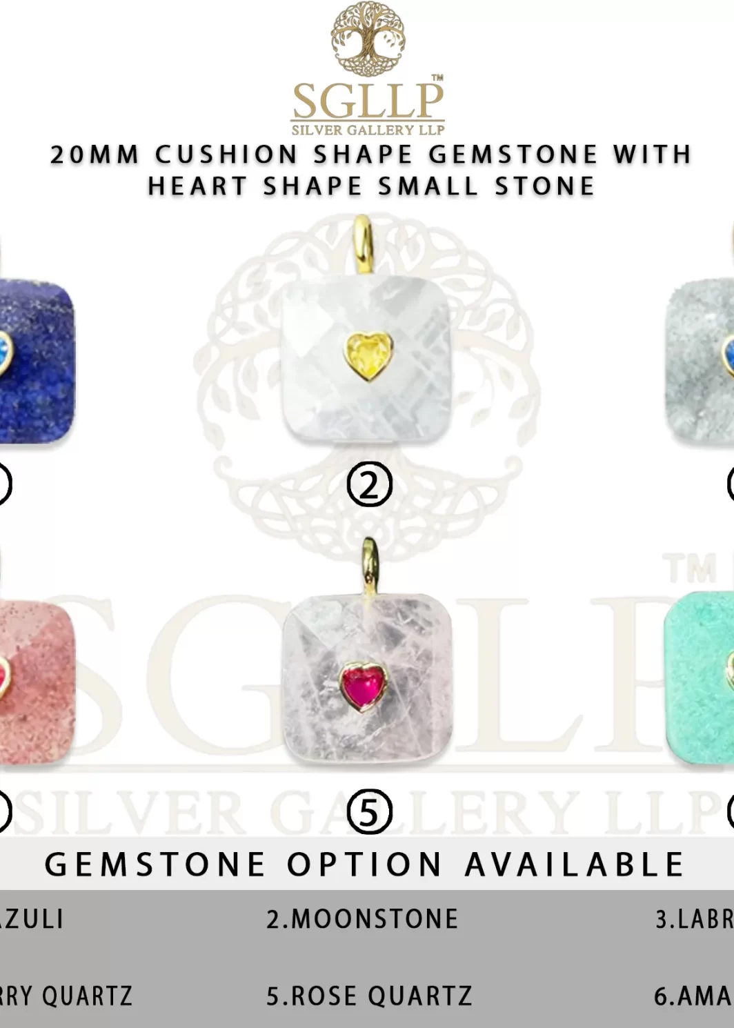 CS051 20MM CUSHION SHAPE GEMSTONE WITH HEART SHAPE SMALL STONE