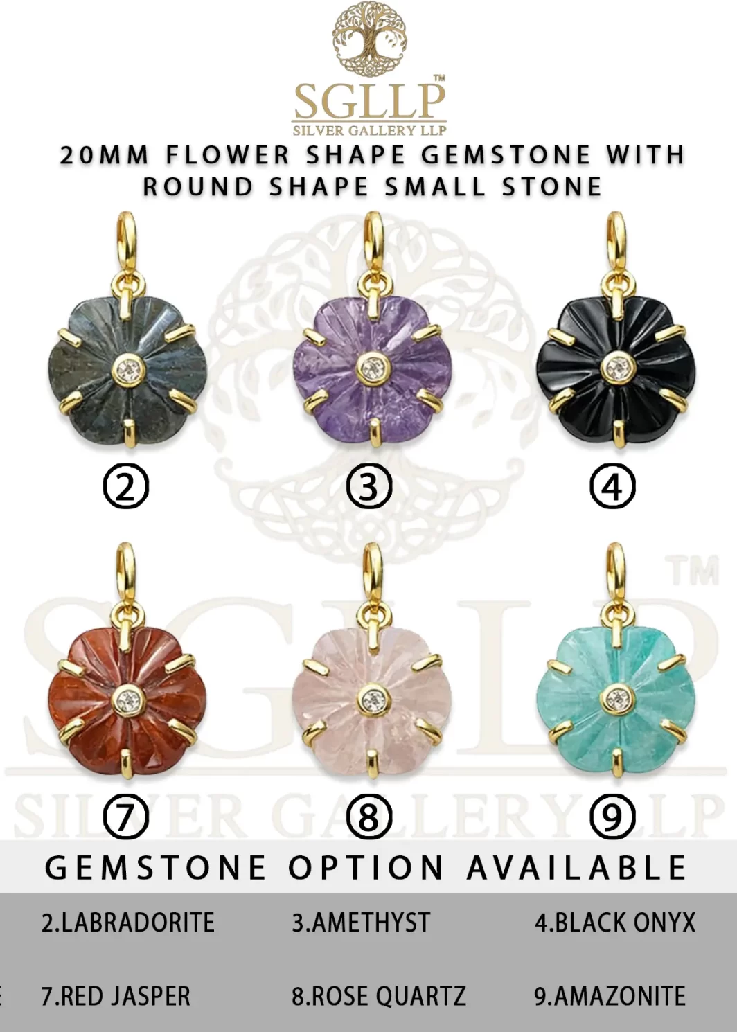 CS054 20MM FLOWER SHAPE GEMSTONE WITH ROUND SHAPE SMALL STONE