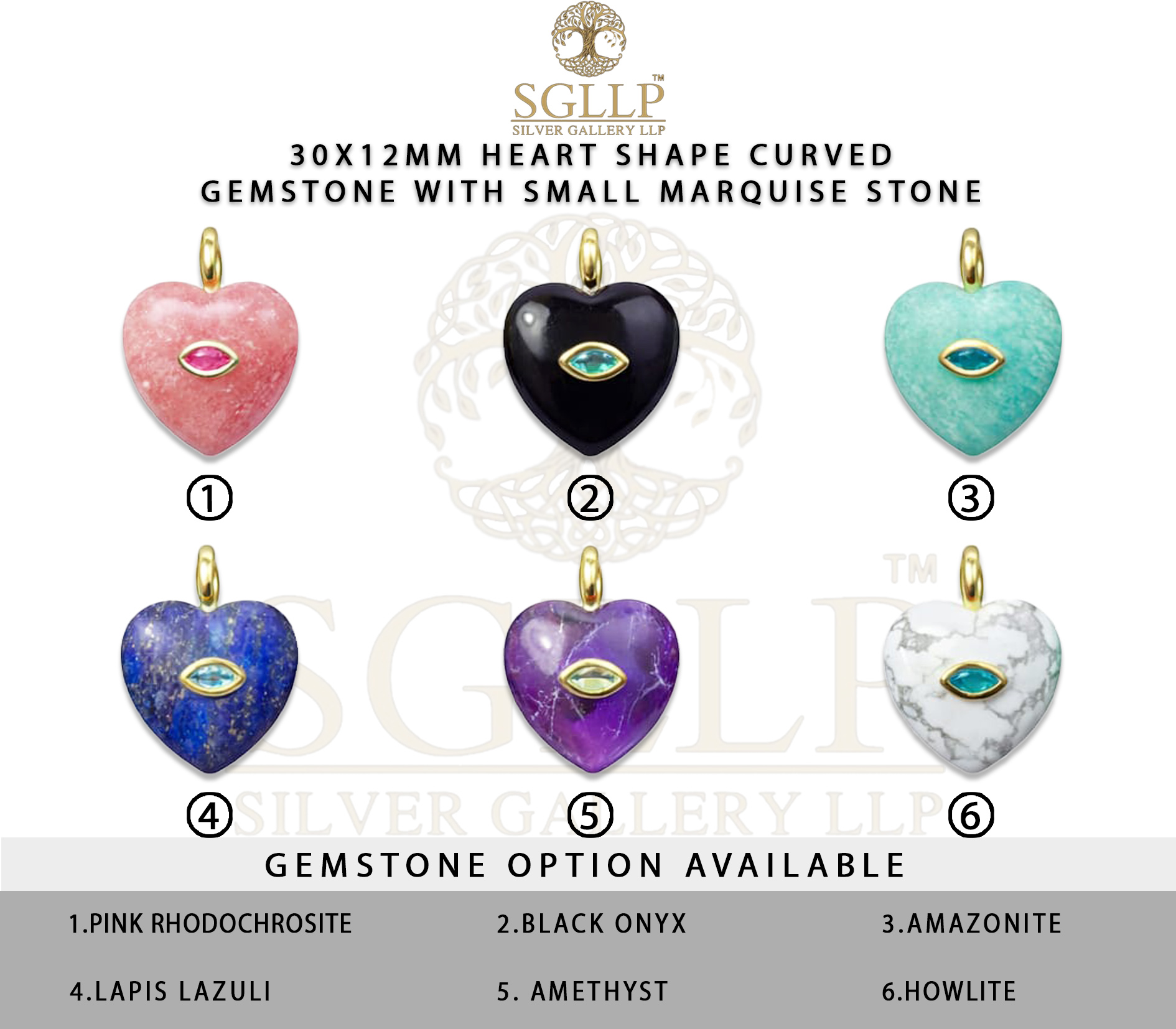 PACK OF 5 OF CS034 25MM HEART SHAPE CARVED GEMSTONE WITH SMALL STONE