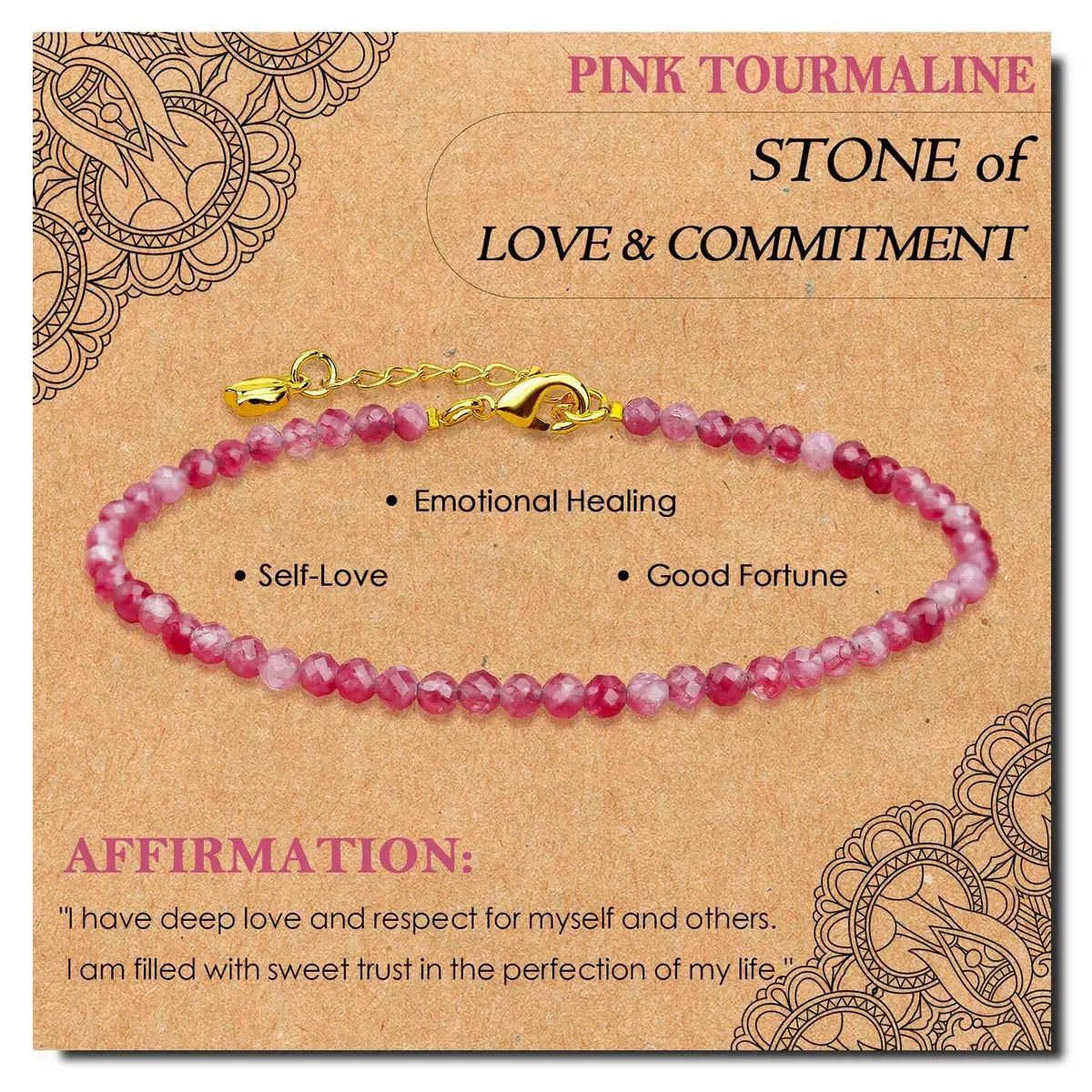 ONE PIECE OF GB011 2MM GOLD PLATED PINK TOURMALINE STONE BEAD BRACELET