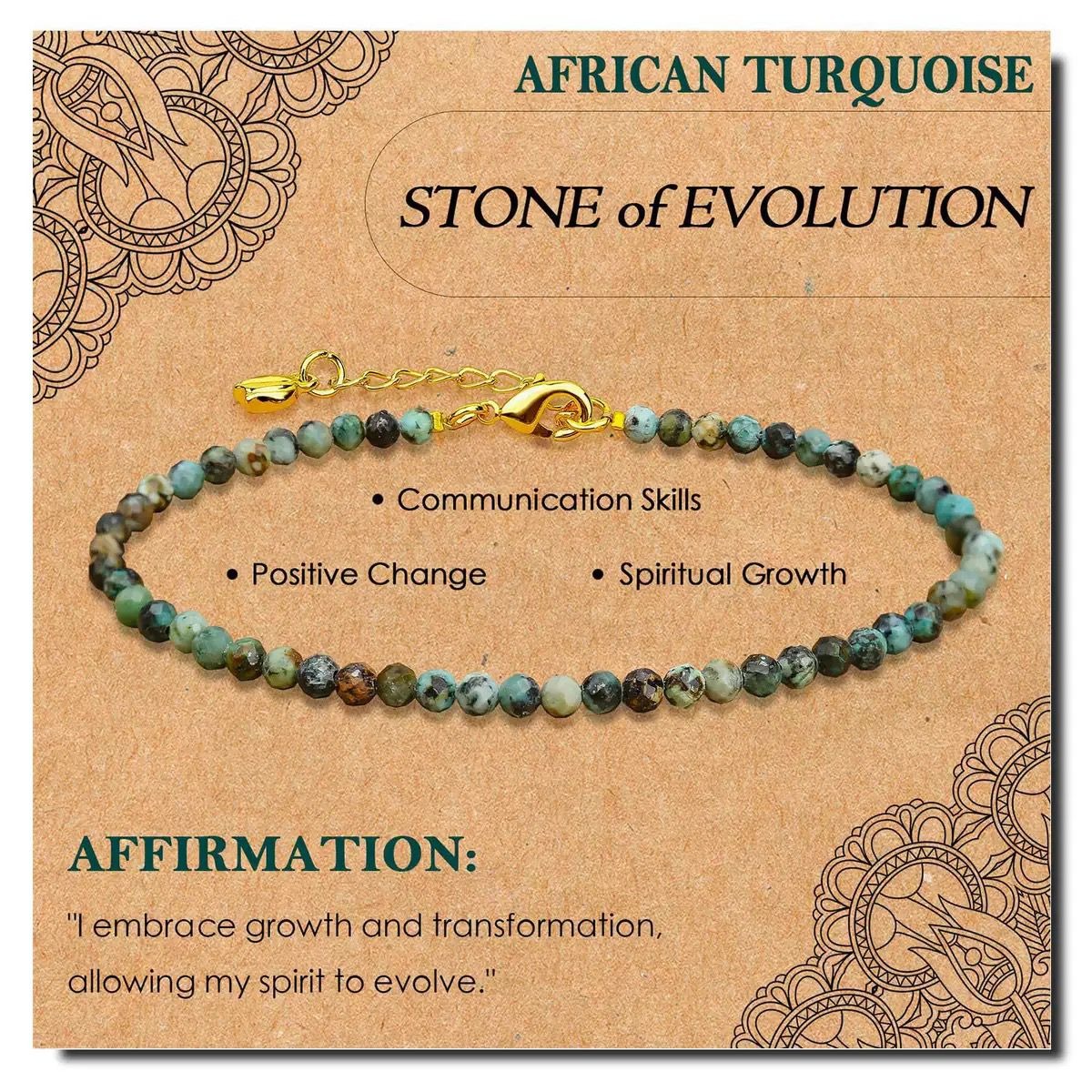 ONE PIECE OF GB016 2MM GOLD PLATED AFRICAN TURQUOISE STONE BEAD BRACELET